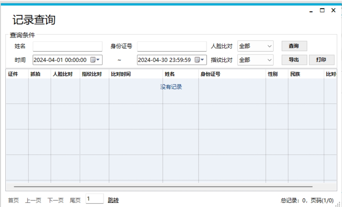 软件具有:人脸核验、指纹核验、打印核验单、模板自定义、数据查询、导出、上传等功能